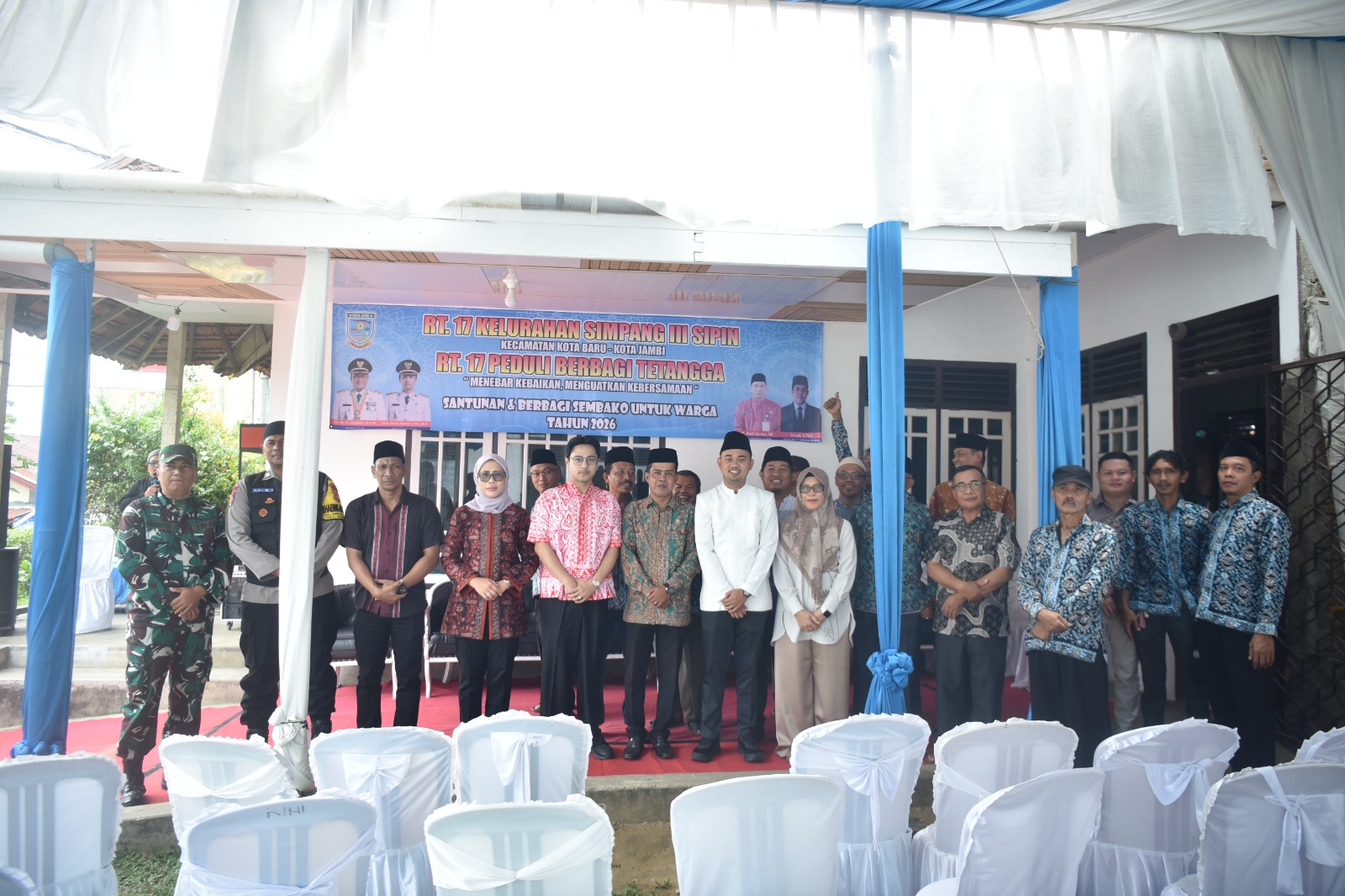 SR28JAMBINEWS.COM, JAMBI – Wali Kota Jambi, Dr. dr. H. Maulana, M.K.M, bersama Wakil Wali Kota, Diza Hazra Aljosha, S.E., M.A, menyerahkan puluhan paket bantuan untuk warga kurang mampu di RT 17, Kelurahan Simpang III Sipin, Kecamatan Kotabaru, Minggu siang (08/03/2026).